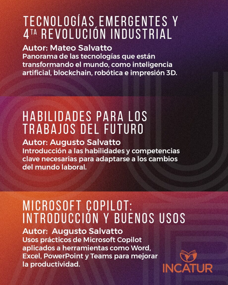 A lo largo del ciclo se abordarán temáticas estratégicas para el desarrollo profesional y organizacional, como inteligencia artificial y sus aplicaciones prácticas, análisis de datos para la toma de decisiones, productividad y aprendizaje, experiencia del cliente, estrategias de comunicación, creación de contenidos, finanzas personales, bienestar digital, emprendimiento, tecnologías emergentes, habilidades para los trabajos del futuro y modelos de negocio con impacto social, con un enfoque práctico y orientado a la acción.