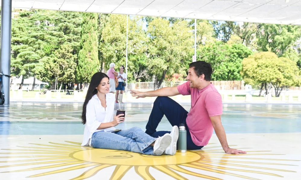 Allí también se encuentra El Aura, una de las nuevas postales de Rosario: una estructura con cubierta reflectante que funciona como mirador y punto de encuentro. La propuesta se completa con el mural “Río Arriba”, una obra colectiva dirigida por Martín Ron que retrata la identidad rosarina e invita a interactuar y formar parte de la escena.
