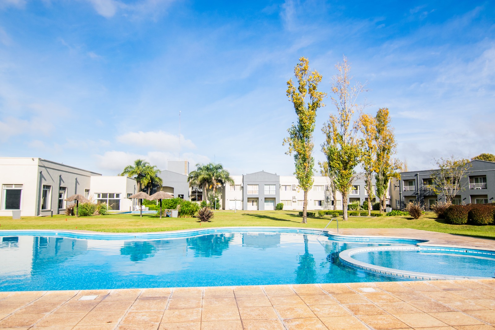 Entre jardines amplios y mucho verde, el hotel ofrece un verdadero refugio para quienes buscan descansar o realizar actividades al aire libre. Los huéspedes pueden disfrutar de sus dos piscinas al aire libre y una cubierta, ideales para relajarse en cualquier momento del año, además de canchas de tenis, fútbol y vóley, sumando opciones para el deporte y la recreación.